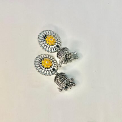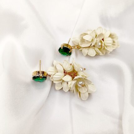 Pearl Embellished Floral Bohemian Fashion Boutique Style Oil-spot Glazed Earrings – White