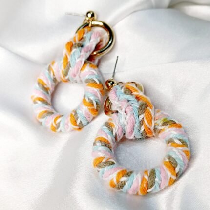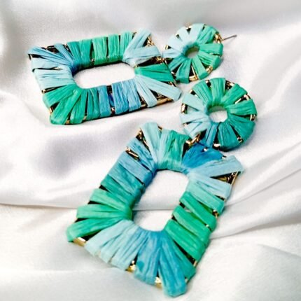BaubleStar Raffia Tassel Hoop Drop Earrings Handmade Fashion Statement