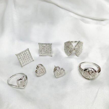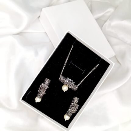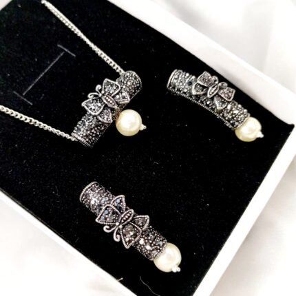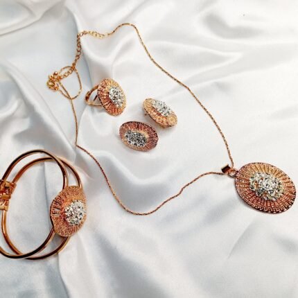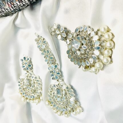Indian Rose Gold Silver style Set with Earrings and Hand Cuff