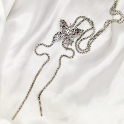 Vintage Afghani Silver Long Chain Boho Statement Necklace