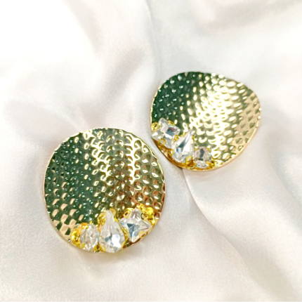 AENSOA Metal Gold Color Half Flower Big Earrings