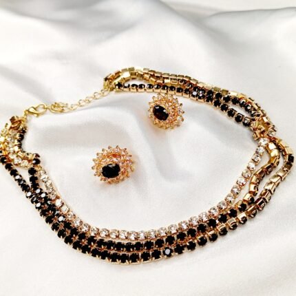 Indian Copper Gold Black Style Set with Earrings and hand cuff
