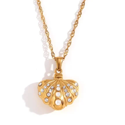 Gold-toned paperclip chain necklace with a toggle clasp and a small oval pendant