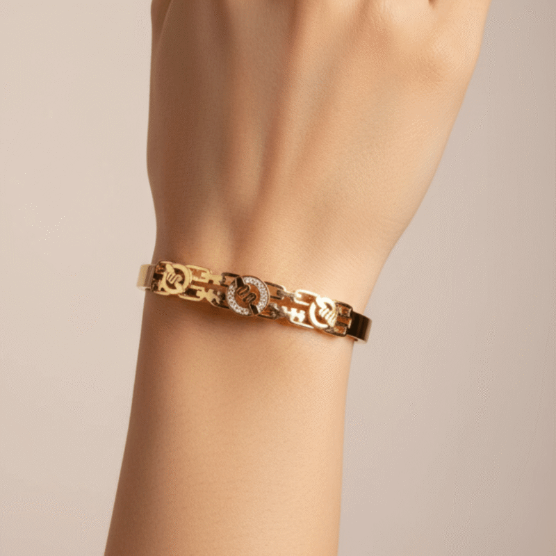 Crystal Changing Handcuff – Stainless Steel | Non-Tarnish | Water-Resistant | Interchangeable Crystal | Branded Full Cover Design