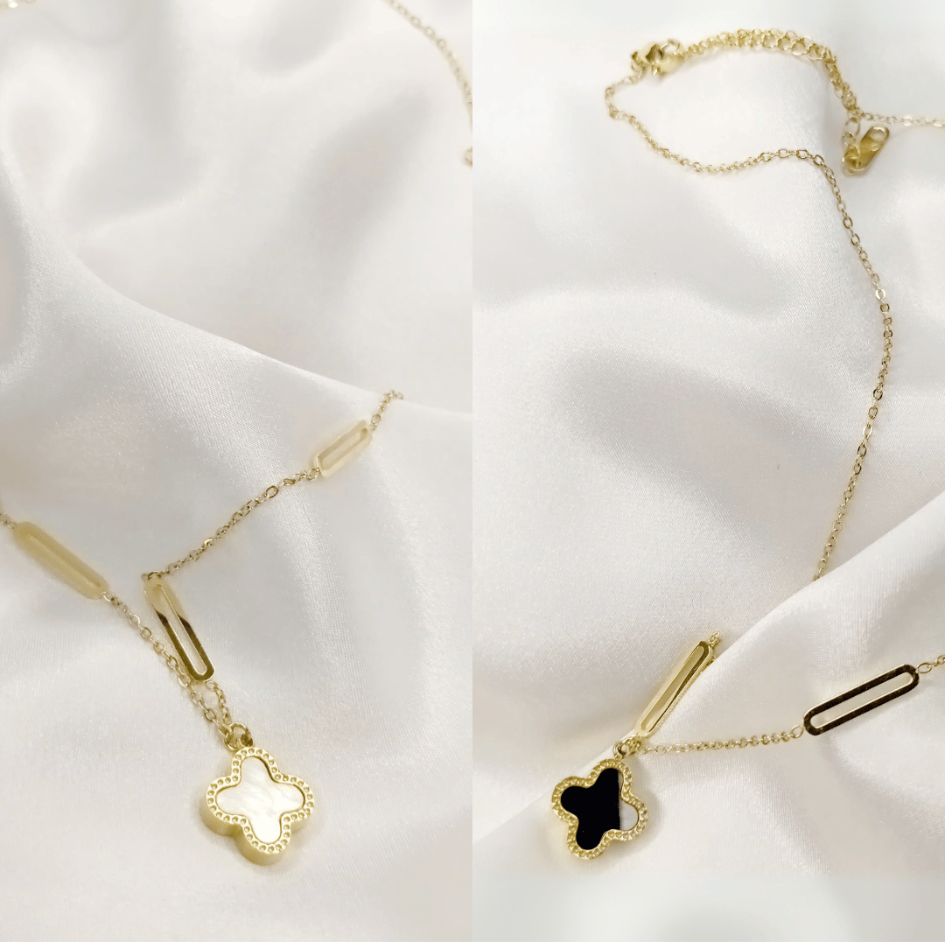 Elegant Double-Sided Clover Pendant – White & Black Design for Every Occasion