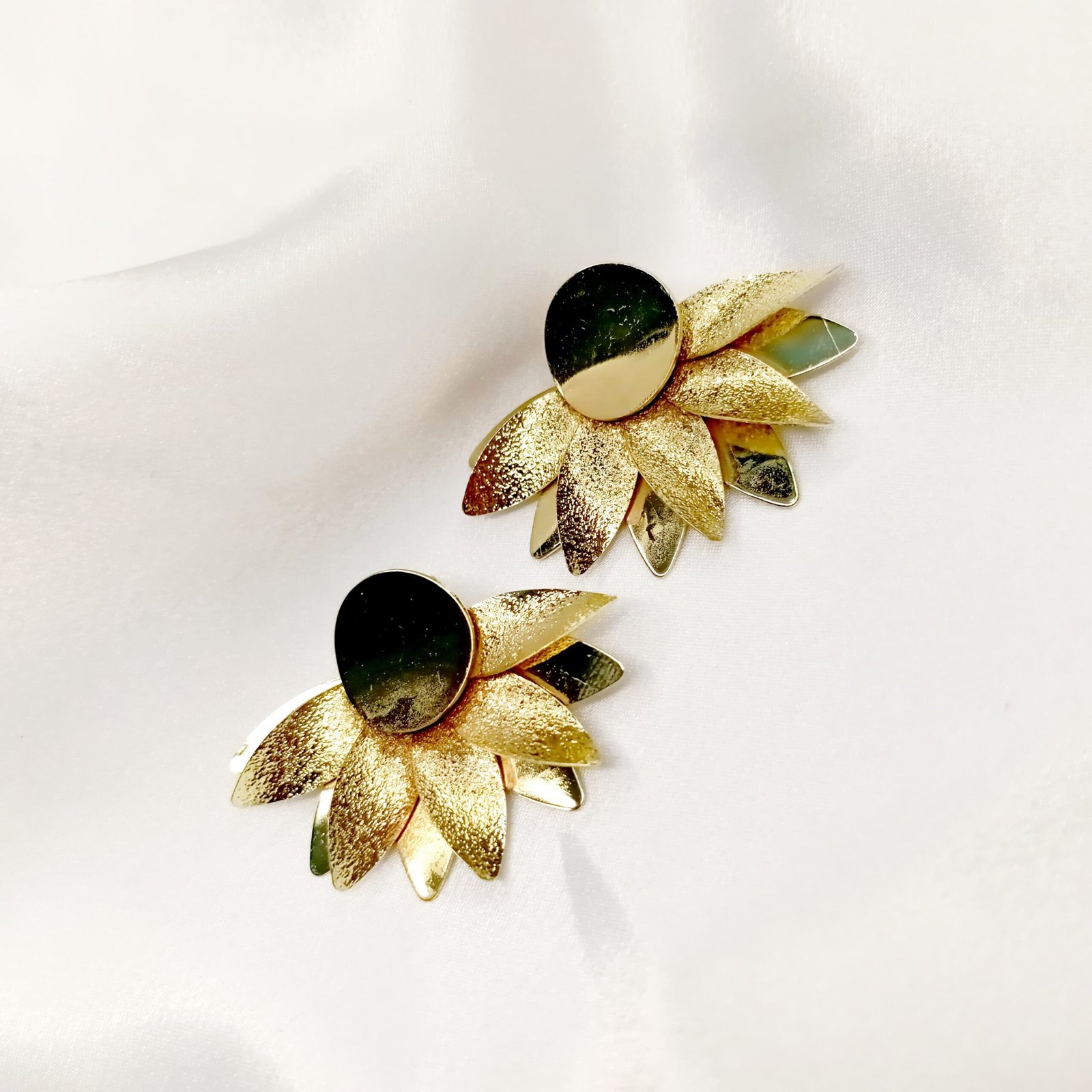 AENSOA Metal Gold Color Half Flower Big Earrings