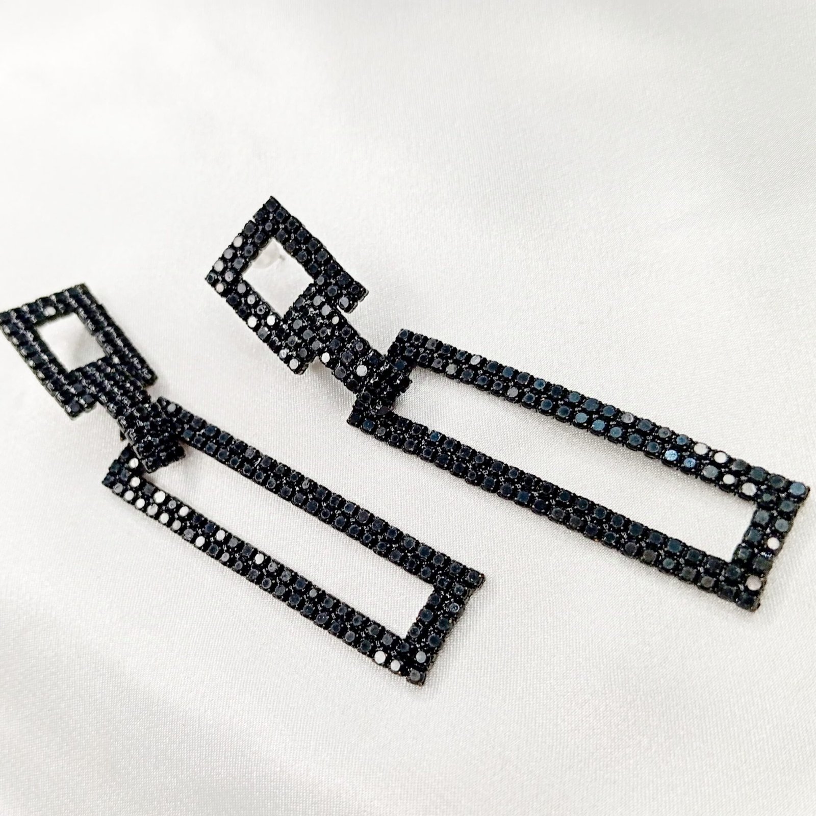 Black Stone Shine Long Two Square Ear studs