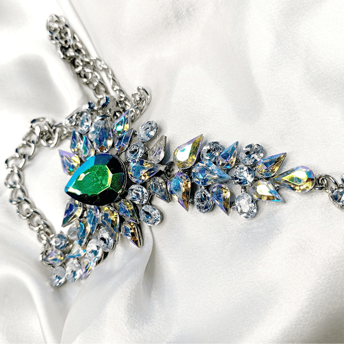 The Emerald Silver Handlet Zircon fills your hands and arm with dazzling zircon stones, complemented by a rich emerald design set in premium silver. A perfect piece for adding a luxurious touch to your look. Available now at StorebyNoor.