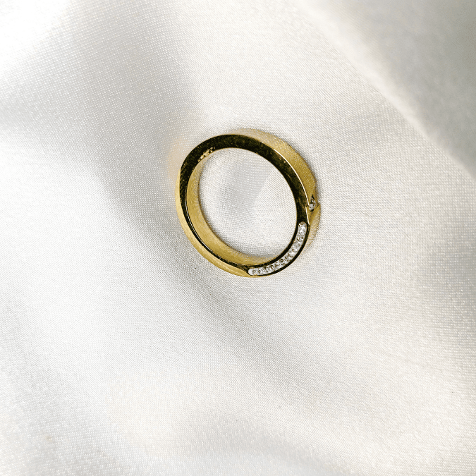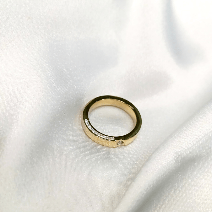 The Front/Side Zircon Stainless Steel Ring features a sleek design with dazzling zircon stones on the front and side, offering a perfect balance of elegance and modern style. Available now at StorebyNoor.