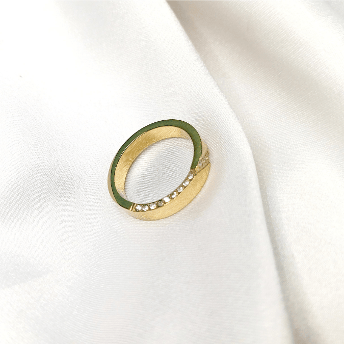 The Front/Side Zircon Stainless Steel Ring features a sleek design with dazzling zircon stones on the front and side, offering a perfect balance of elegance and modern style. Available now at StorebyNoor.