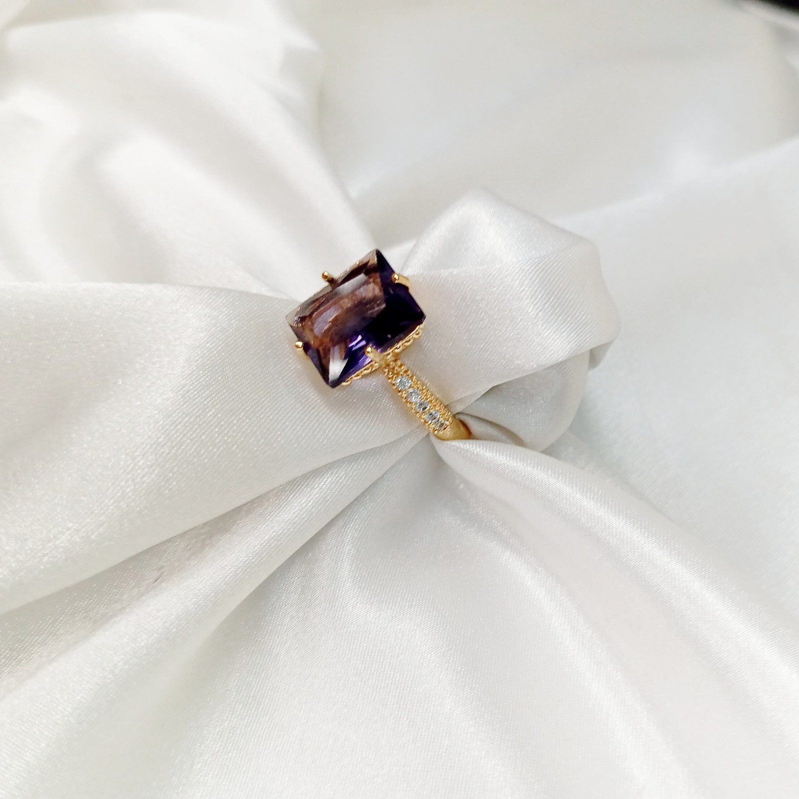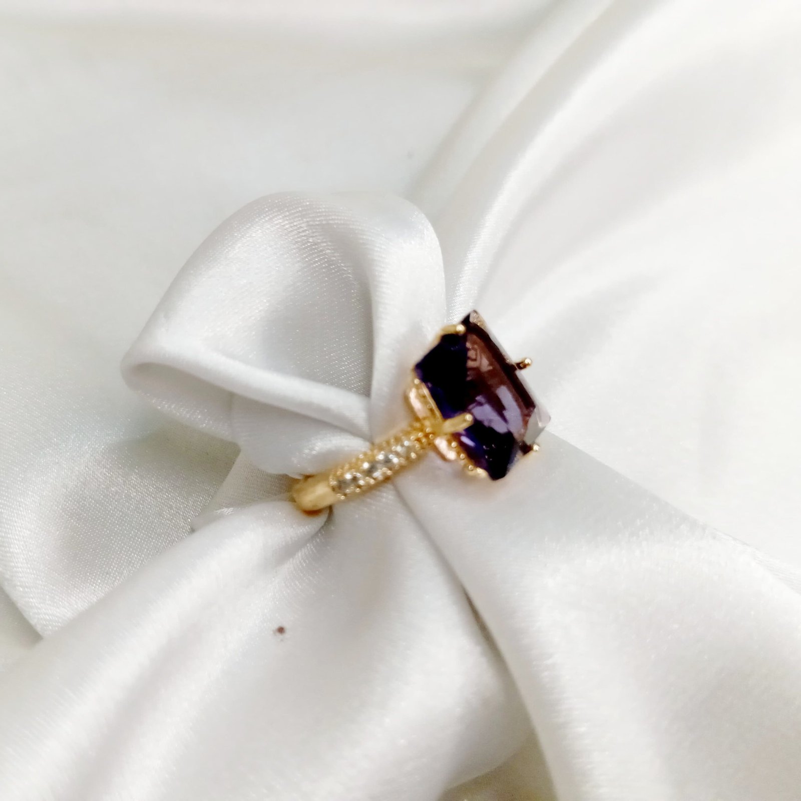 Plum zircon rings with gold accent Adjustable
