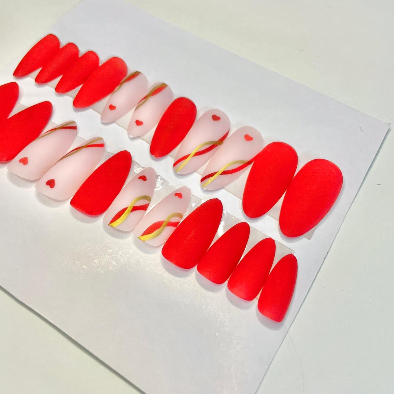 red printed heart nails set
