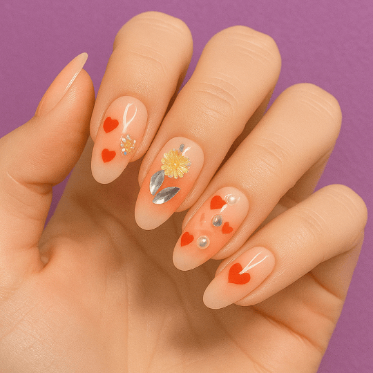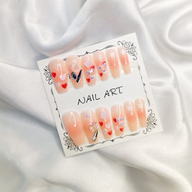Reusable Heart French Medium Size 12 Pcs Nails Set