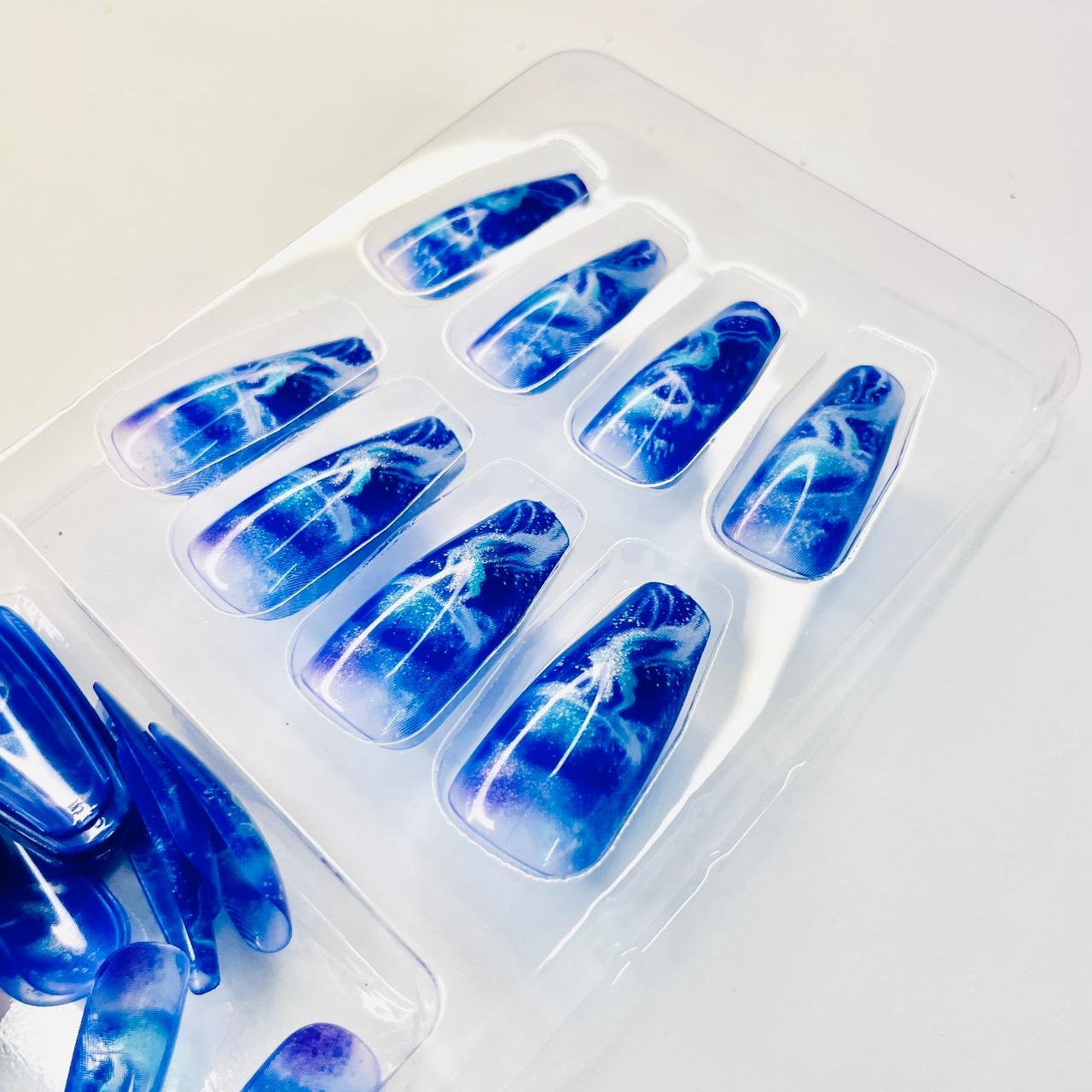 reusable marble glitter luminecent blue 12 pcs nails set
