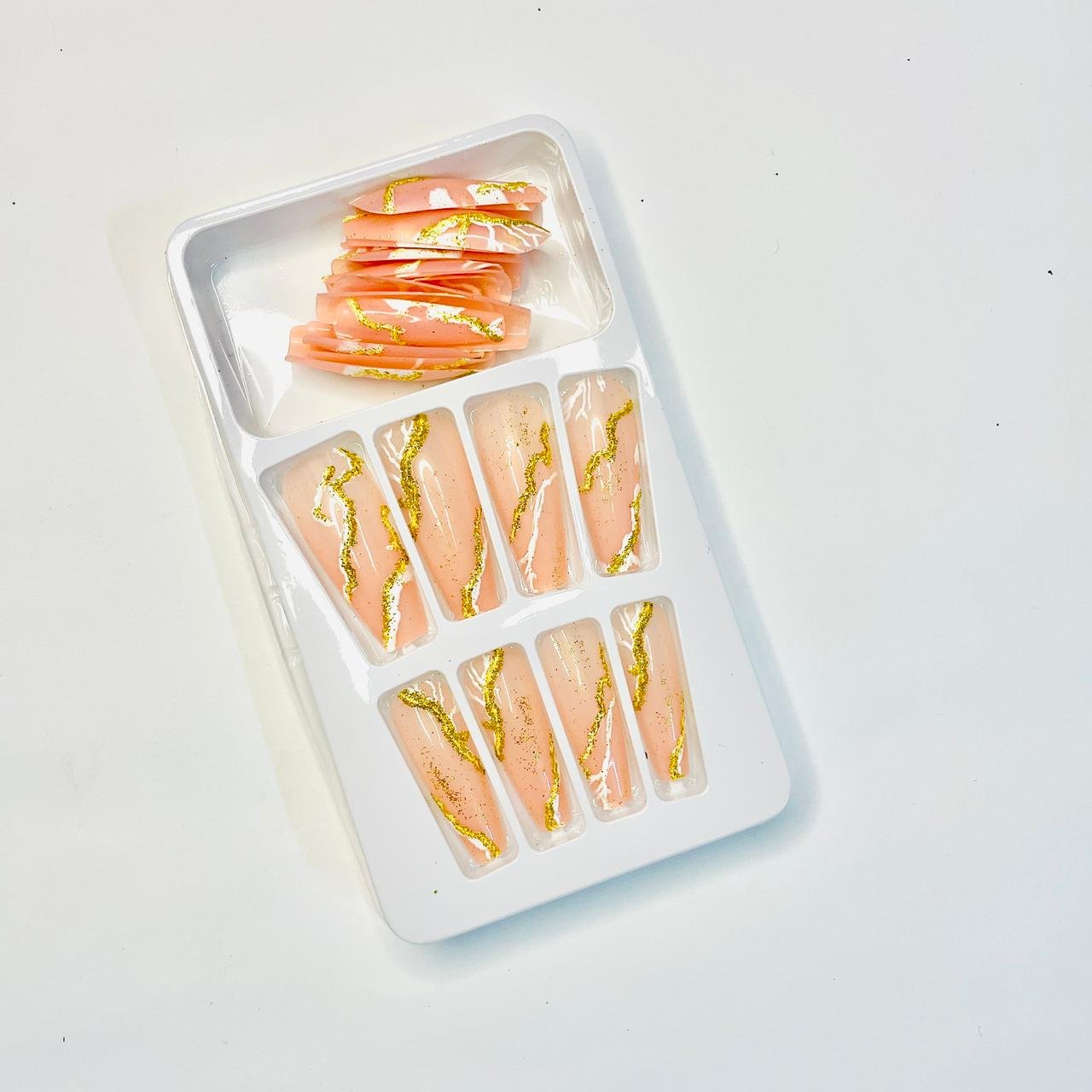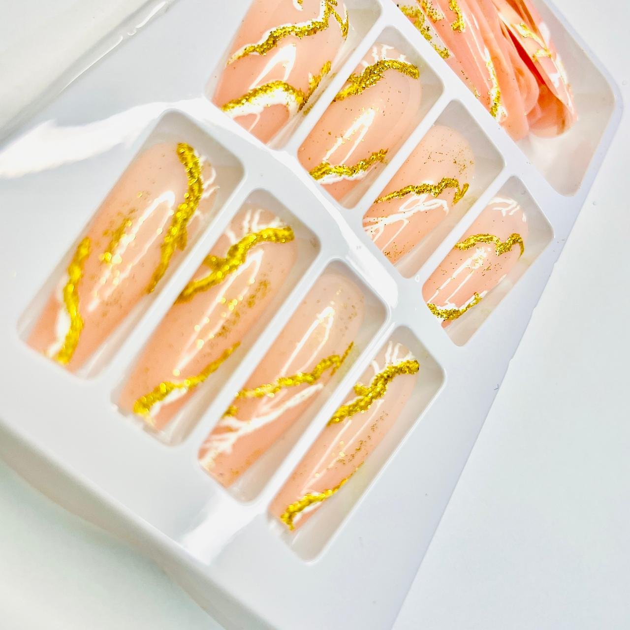 Reusable Nude Pink & Blue Marble 12 Pcs Nail set