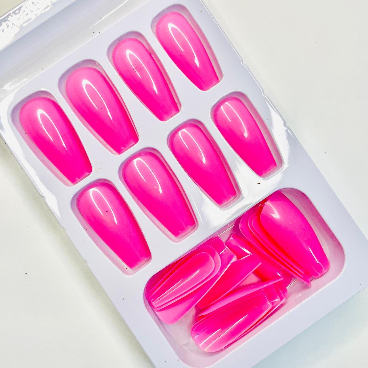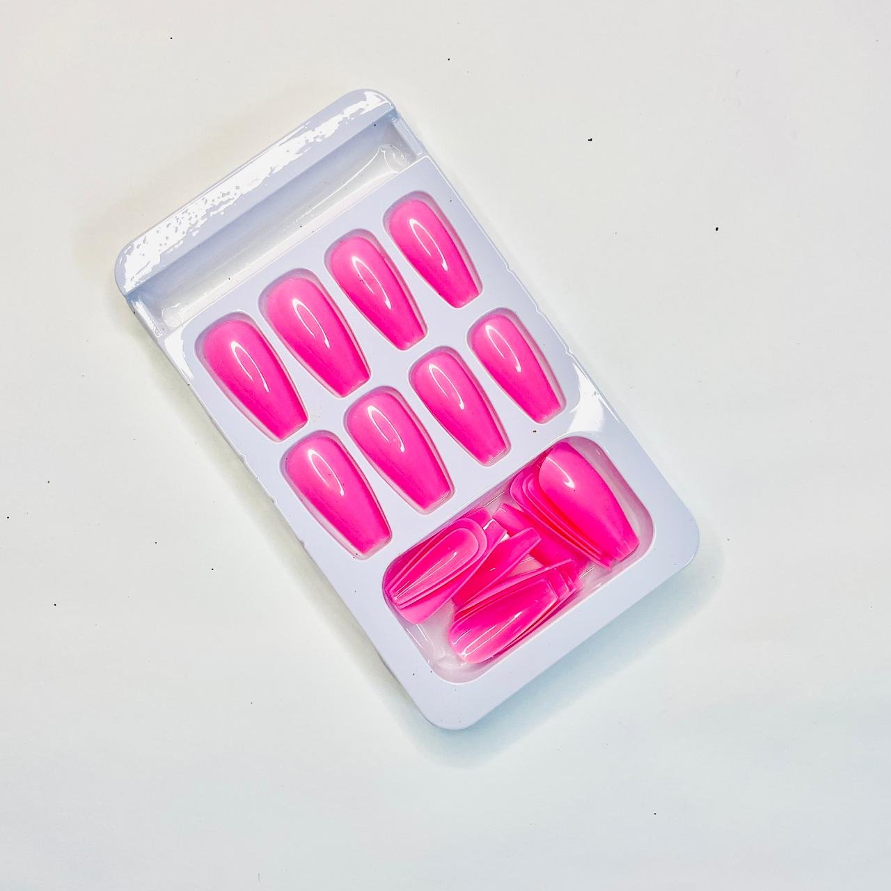 Make a bold, vibrant statement with this Reusable Shocking Pink Plain Press-On Nail Set (24 Pcs). Featuring a high-impact, bright hot pink color and a classic, glossy finish, these simple yet stunning false nails deliver an instantly fashionable and flawless look. Durable, easy to apply, and the 24-piece set ensures a perfect, salon-quality fit every time.