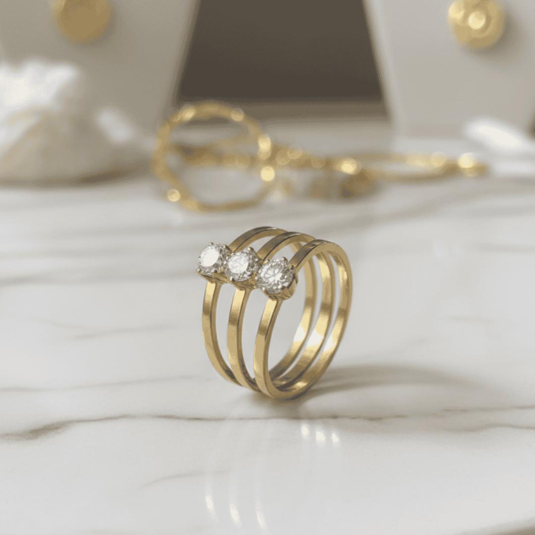 Rosamund 3 triangle crystal Cute Dull Gold Rings
