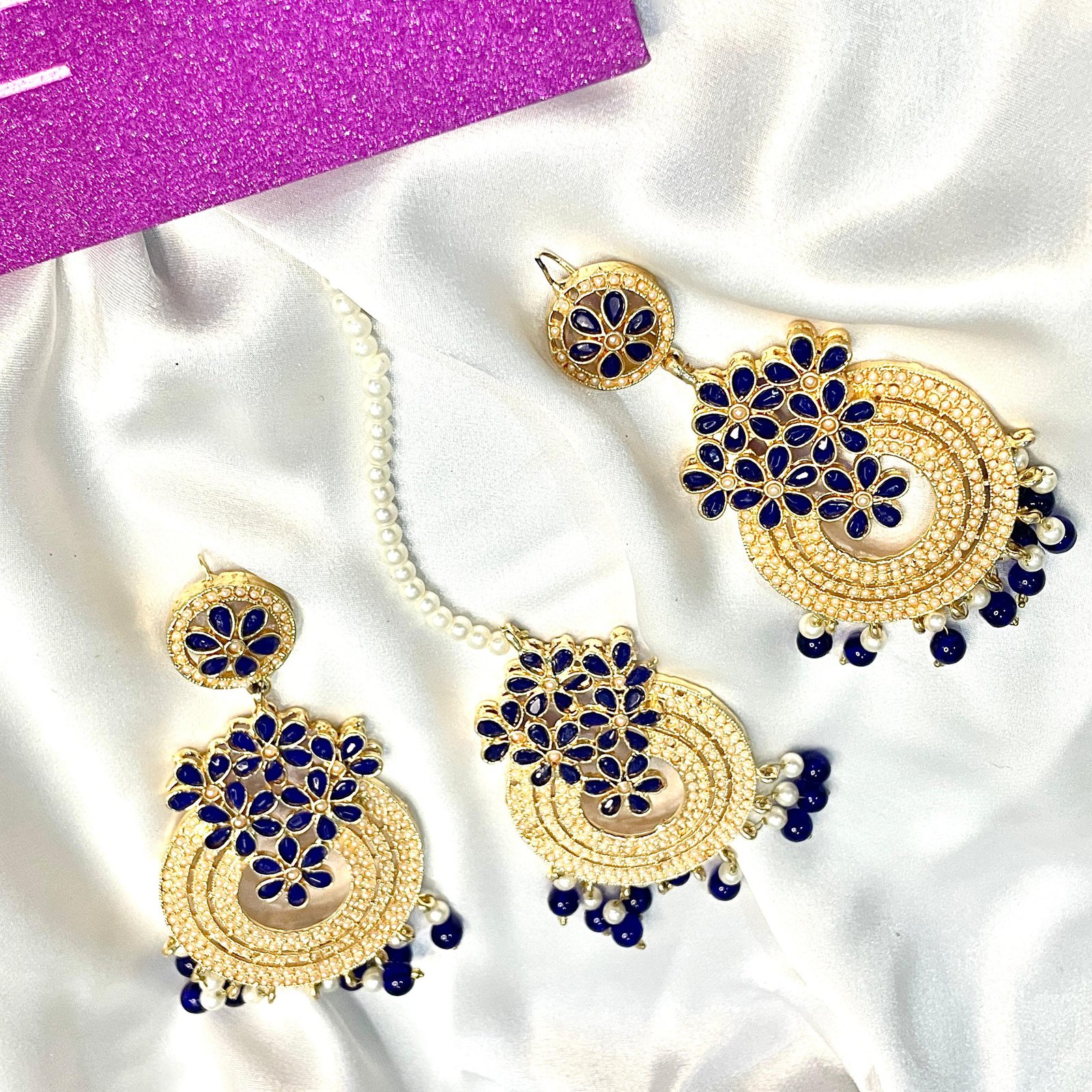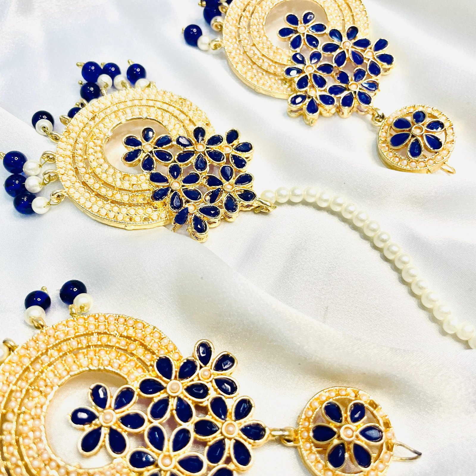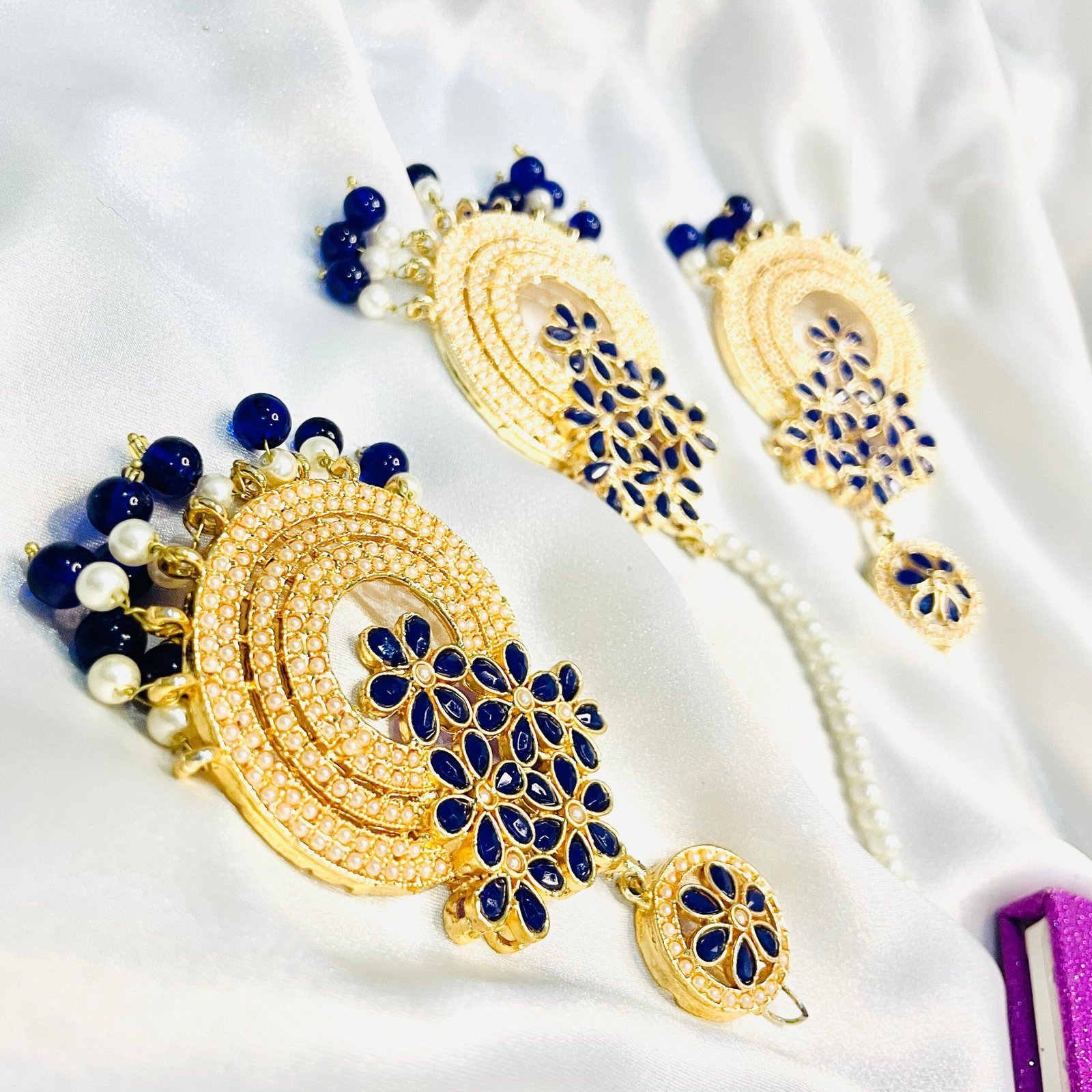 - Royal Blue Chand Bali and Tikka set with intricate detailing.