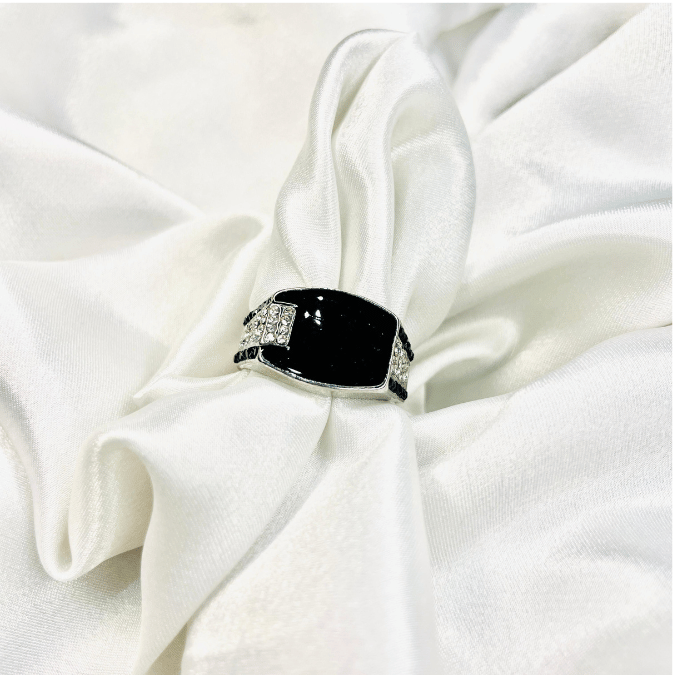 Unisex Square Rings Black and Silver Zircon -Choose sizes below